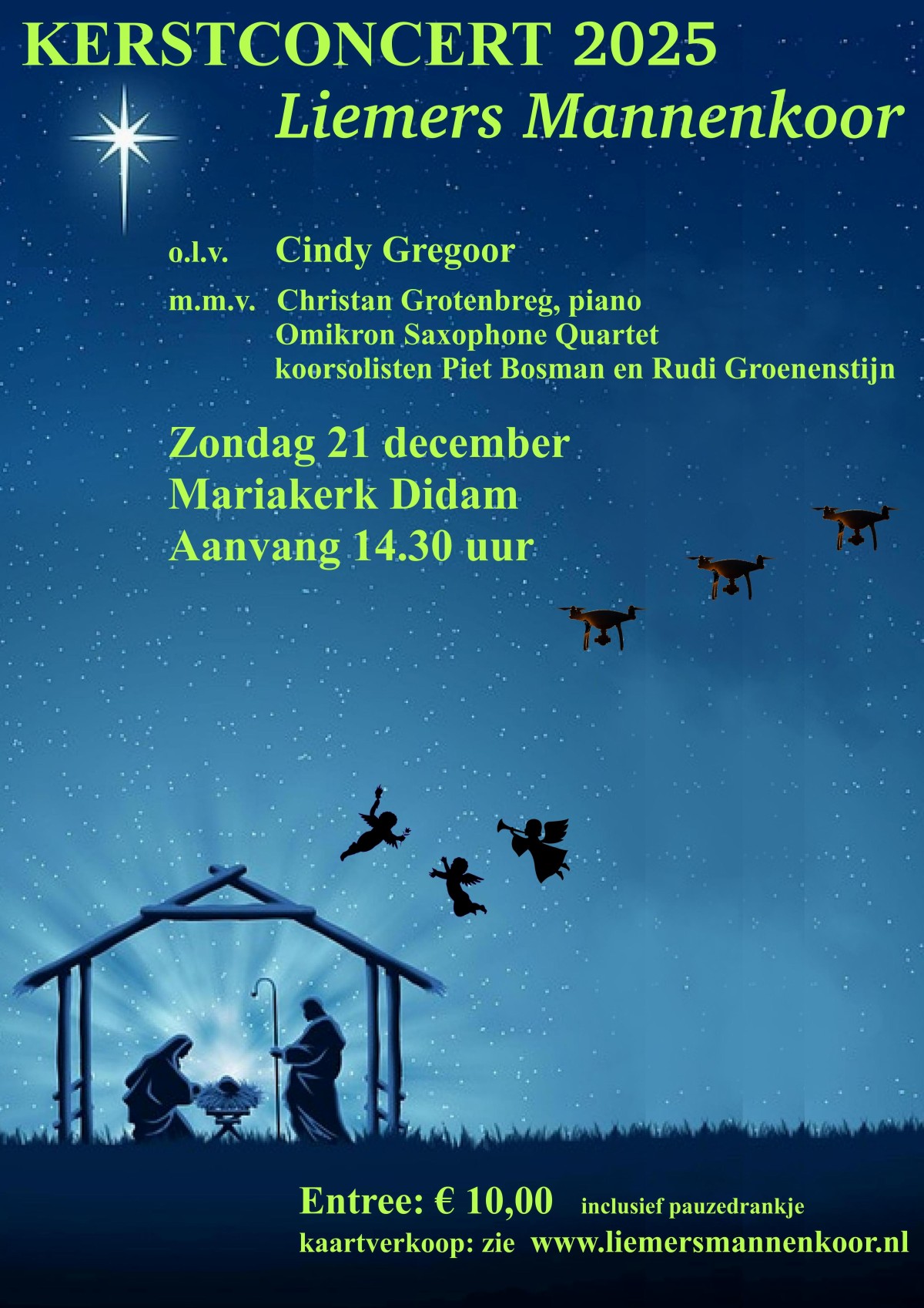 Het concert begint op zondag 21 december om 14:30 uur in de Mariakerk in Didam. De kerk gaat open om 14:00 uur.